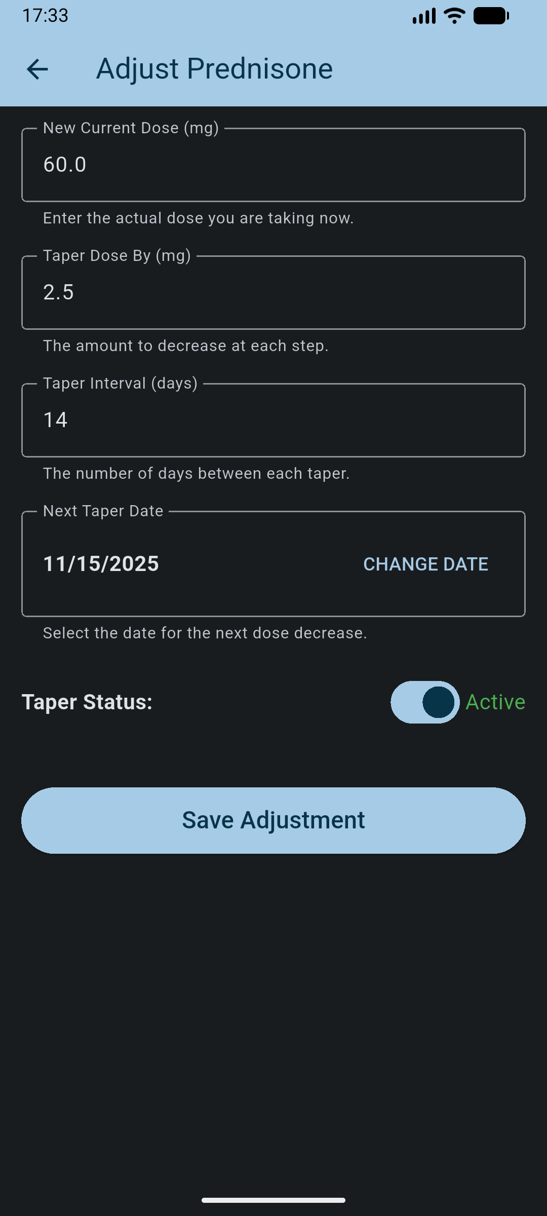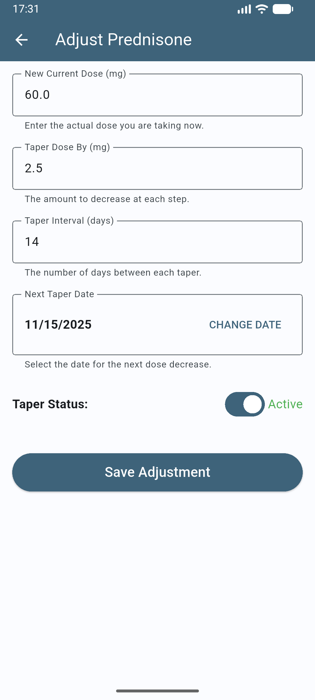 TaperMed is a simple, easy to use, medication taper mobile application.